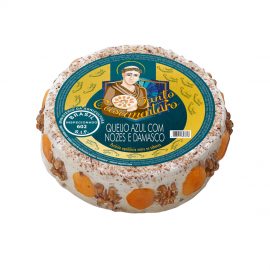 Queijo Azul (Leite pasteurizado, Creme de leite pasteurizado, cloreto de sódio (sal), coagulante microbiano, fermento láctico, Penicillium roquefort, agente de firmeza Cloreto de Cálcio (INS 509), corante clorofila (INS 140i) e conservador natamicina (INS 235)), Cream cheese (Leite desnatado pasteurizado, creme de leite, cloreto de sódio (sal), espessante goma guar (INS 412), conservador sorbato de potássio (INS 202) e fermento lácteo), nozes trituradas e damascos triturados. NÃO CONTÉM GLÚTEN. ALÉRGICOS: CONTÉM NOZES E DERIVADOS DE LEITE. CONTÉM LACTOSE.